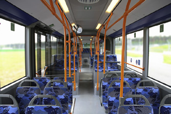 Специального багажного отсека у автобуса нет, громоздкие вещи можно поставить на средней площадке. Задняя часть салона находится на возвышенности и предназначена для пассажиров дальнего следования, в передней части расположены сидения, как в обычном городском автобусе. То есть салон условно разделен на две части – для близких и дальних поездок.