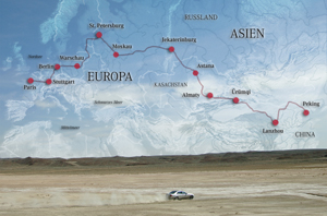 Новое поколение Mercedes-Benz E-класса сразу после его премьеры в Европе 10 июня ожидает серьезное испытание: тридцать три автомобиля E-класса, преимущественно с дизельными двигателями, отправляются в длительный пробег из Парижа в Пекин, где сейчас начинается производство этих седанов бизнес-класса. Данный пробег, не только наводит мосты между Европой и Азией, он весьма символичен, поскольку пройдет по маршруту первых в истории трансконтинентальных автомобильных соревнований, которые начались ровно девяносто девять лет назад, 10 июня 1907 года, в Пекине и через шестьдесят два дня завершились в Париже. Сегодня современные автомобили Mercedes-Benz E-класса должны пройти этот маршрут, местами пролегающий по бездорожью, всего за 26 дней.