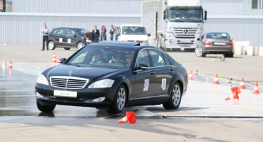 Участники события – VIP-гости и почитатели продукции Mercedes-Benz – после прохождения теоретической части обучения направились на специально подготовленную для маневров территорию. Здесь были сымитированы разные типы трасс, которые предстояло пройти всем «ученикам». Слалом, изменение полосы движения, езда и торможение на различных поверхностях – вот неполный перечень элементов, освоенных участниками тренировочных заездов. Инструкторы по рации координировали действия водителей, давая им советы и поправляя их ошибки. Проходя упражнение вновь и вновь, навыки участников заметно улучшались, что в очередной раз подтвердило высокий профессионализм и заботу о безопасности владельцев автомобилей Mercedes-Benz.